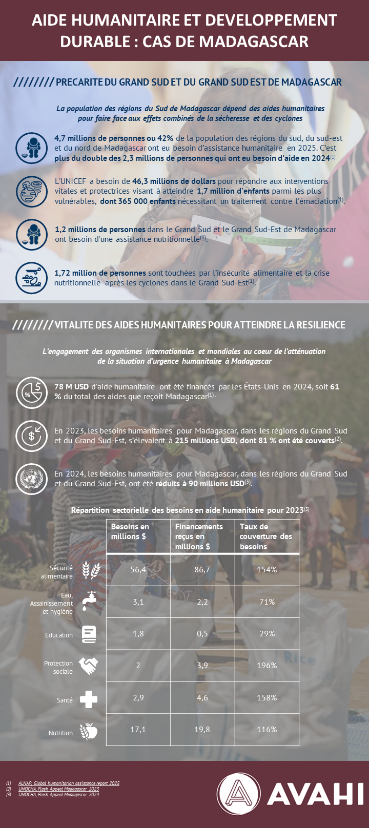 À l’occasion de la Journée mondiale de l’aide humanitaire, AVAHI vous partage deux infographies illustrant les liens entre l’aide humanitaire et le développement durable, ainsi que les enjeux qui y sont associés.